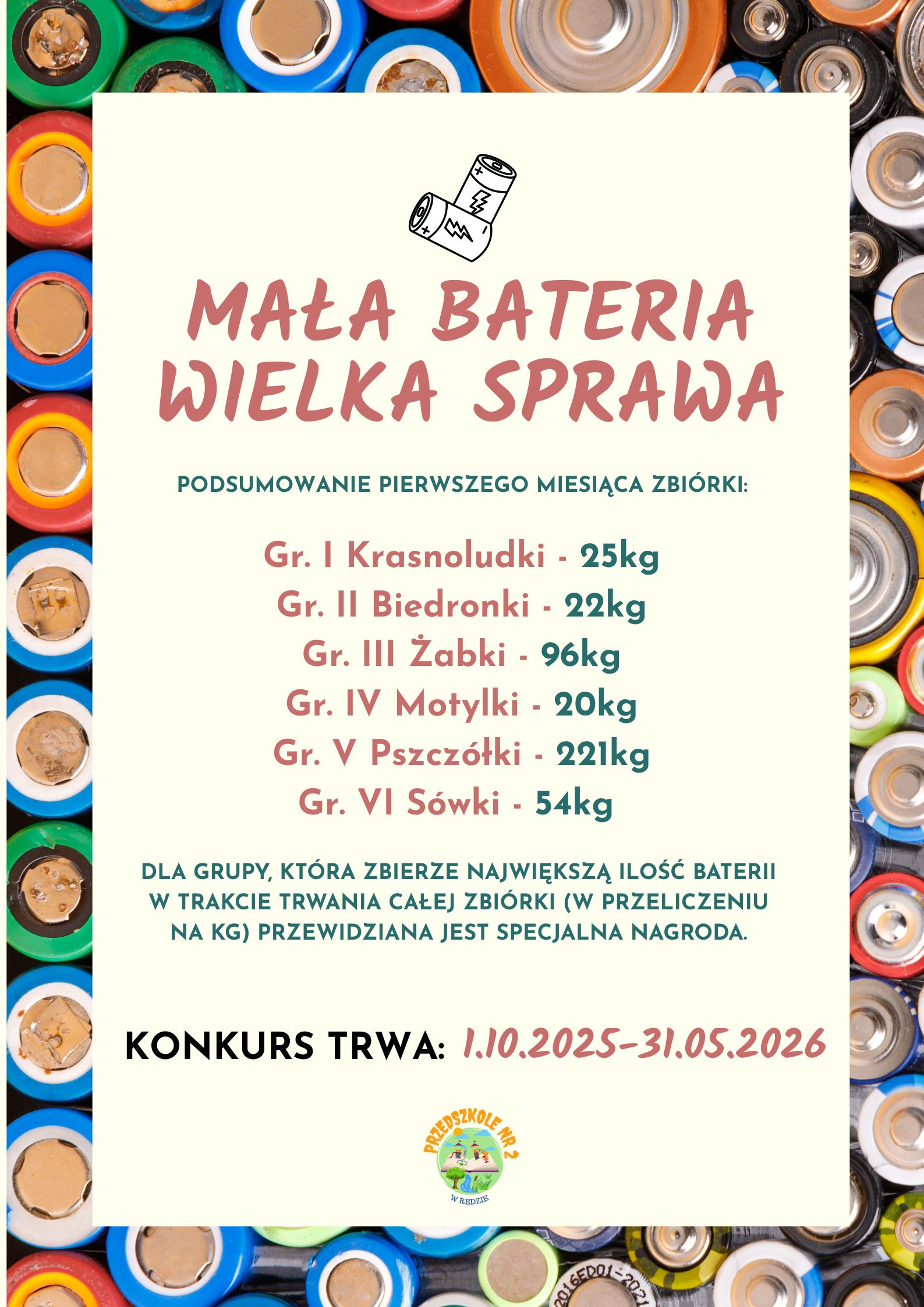 Grupa, która w trakcie całej akcji zbierze najwięcej baterii (w przeliczeniu na kilogramy), otrzyma nagrodę specjalną! 🏆