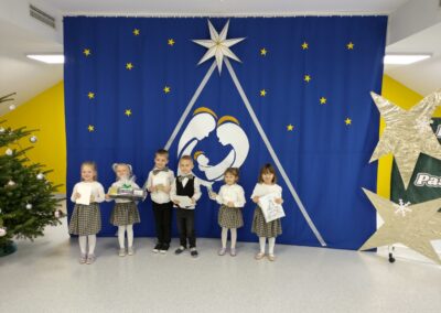 Reprezentanci grupy Pszczółki 🐝 mieli dziś niezwykłą okazję, aby dumnie zaprezentować nasze przedszkole podczas Międzyprzedszkolnego Konkursu Wokalnego – Festiwalu Kolęd i Pastorałek 🎤✨, zorganizowanego przez Przedszkole Mapeciaki Reda. Wydarzenie zgromadziło wielu małych artystów z różnych placówek, tworząc atmosferę pełną radości, świątecznego klimatu 🎄 oraz muzycznych wzruszeń.