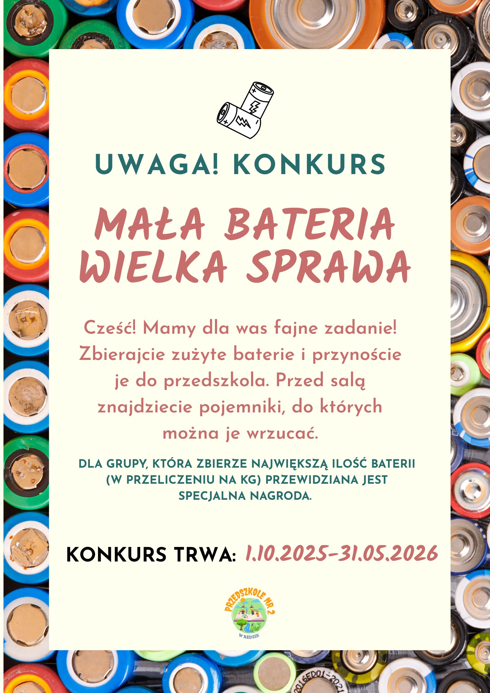 Z radością ogłaszamy start przedszkolnego konkursu „Mała bateria wielka sprawa”! 🔋🔥